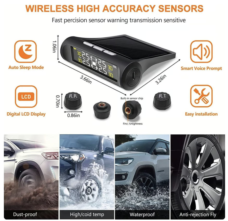 4 External Cap Sensors: The sensors can be sealed against dust, snow and water. Gives you early warning of air leaks and other abnormal tire situations so corrective action can be taken and tire life can be extended.